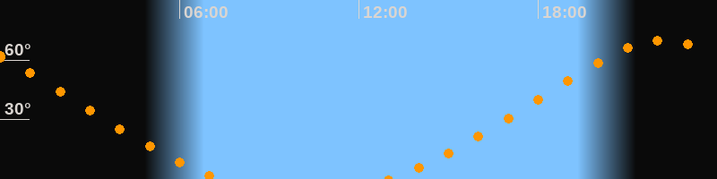 Höchster Stand (Kulmination)22:10 Uhr (h = 70°)