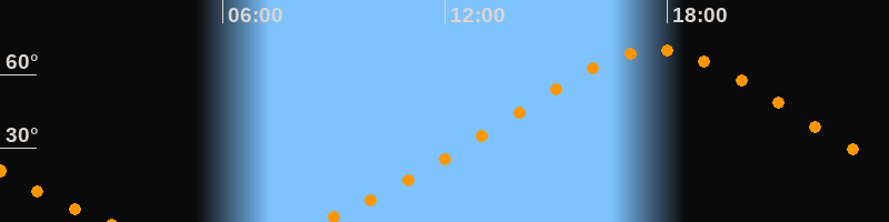 Höchster Stand (Kulmination)17:41 Uhr (h = 70°)