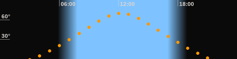Höchster Stand (Kulmination)12:15 Uhr (h = 70°)