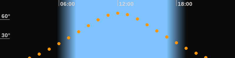 Höchster Stand (Kulmination)12:04 Uhr (h = 70°)