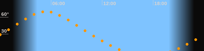 Höchster Stand (Kulmination)05:23 Uhr (h = 70°)
