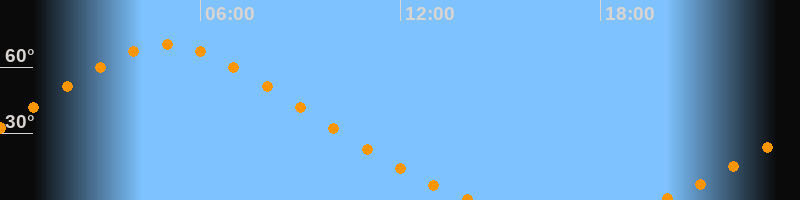 Höchster Stand (Kulmination)05:00 Uhr (h = 70°)