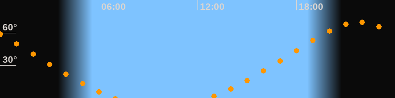 Höchster Stand (Kulmination)21:47 Uhr (h = 70°)
