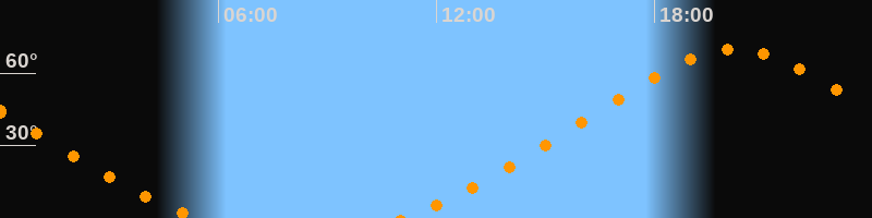 Höchster Stand (Kulmination)20:13 Uhr (h = 70°)