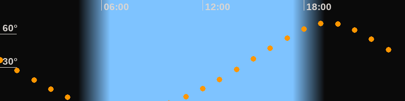 Höchster Stand (Kulmination)19:26 Uhr (h = 70°)
