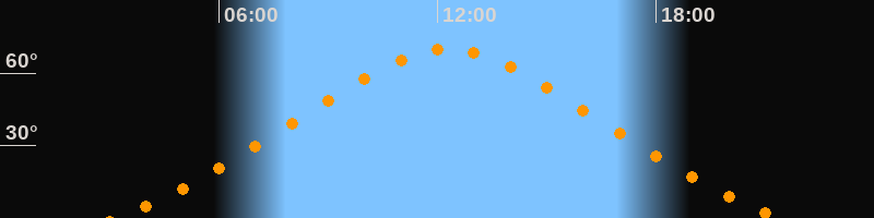 Höchster Stand (Kulmination)12:17 Uhr (h = 70°)