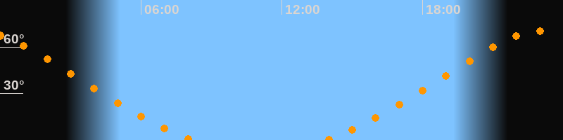 Höchster Stand (Kulmination)23:01 Uhr (h = 70°)