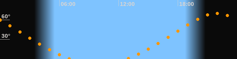 Höchster Stand (Kulmination)21:54 Uhr (h = 70°)