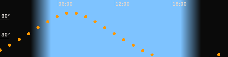 Höchster Stand (Kulmination)07:29 Uhr (h = 70°)