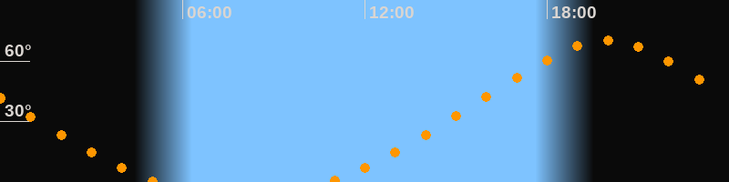 Höchster Stand (Kulmination)19:57 Uhr (h = 70°)