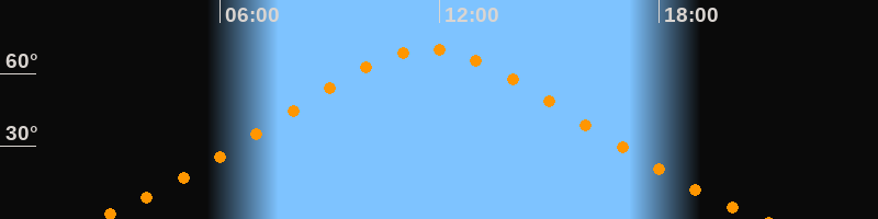 Höchster Stand (Kulmination)11:41 Uhr (h = 70°)