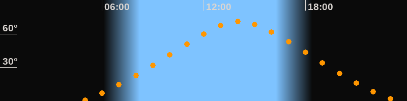 Höchster Stand (Kulmination)14:05 Uhr (h = 71,1°)