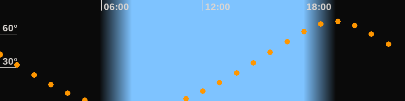 Höchster Stand (Kulmination)19:51 Uhr (h = 71,1°)