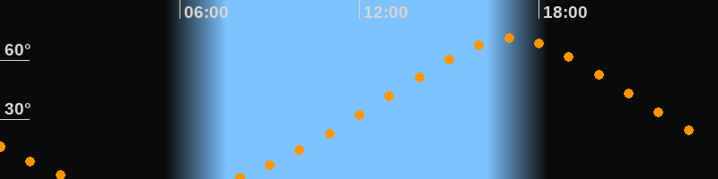 Höchster Stand (Kulmination)17:05 Uhr (h = 71,1°)