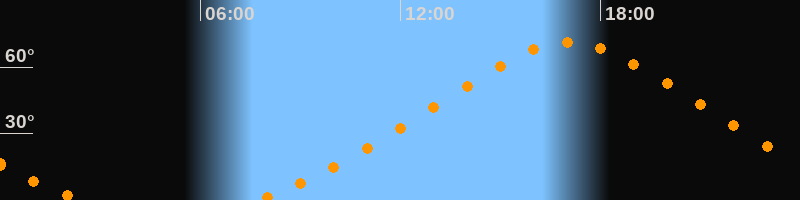 Höchster Stand (Kulmination)17:03 Uhr (h = 71,1°)