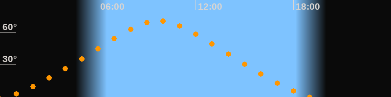 Höchster Stand (Kulmination)09:43 Uhr (h = 71,1°)