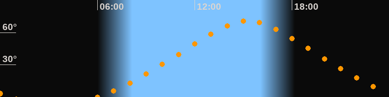 Höchster Stand (Kulmination)15:17 Uhr (h = 71,1°)