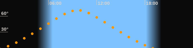 Höchster Stand (Kulmination)09:37 Uhr (h = 71°)