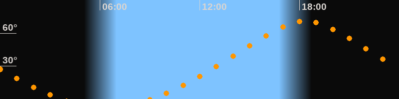 Höchster Stand (Kulmination)18:21 Uhr (h = 71°)