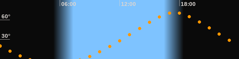 Höchster Stand (Kulmination)17:32 Uhr (h = 71°)