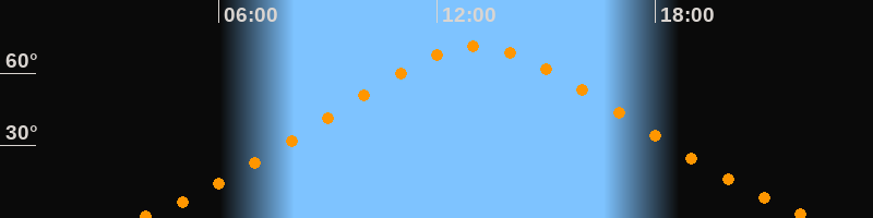 Höchster Stand (Kulmination)13:06 Uhr (h = 71°)
