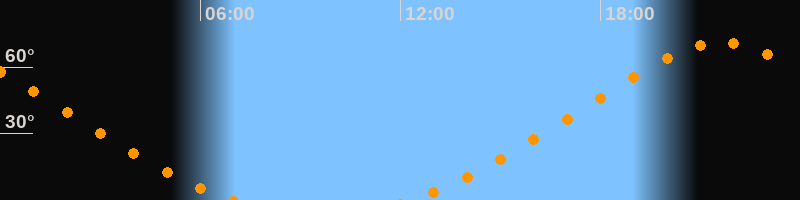 Höchster Stand (Kulmination)21:36 Uhr (h = 71°)