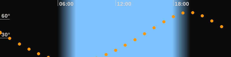 Höchster Stand (Kulmination)19:34 Uhr (h = 71°)