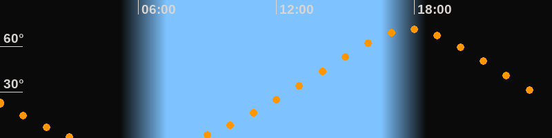 Höchster Stand (Kulmination)17:51 Uhr (h = 71°)