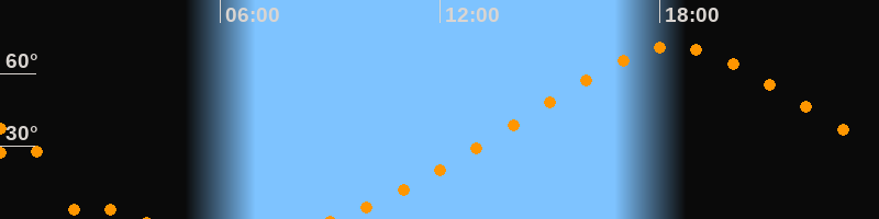 Höchster Stand (Kulmination)18:24 Uhr (h = 71°)