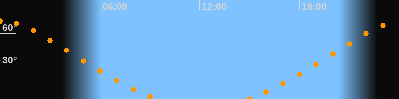 Höchster Stand (Kulmination)00:08 Uhr (h = 71°)