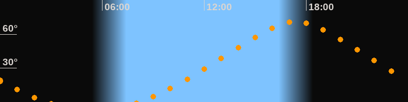 Höchster Stand (Kulmination)17:24 Uhr (h = 71°)
