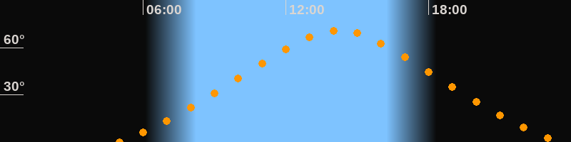 Höchster Stand (Kulmination)14:13 Uhr (h = 71°)