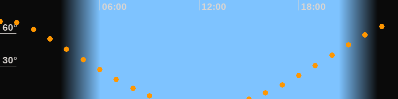 Höchster Stand (Kulmination)00:15 Uhr (h = 71°)