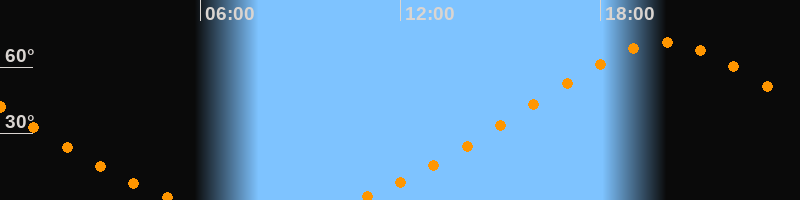 Höchster Stand (Kulmination)19:56 Uhr (h = 71°)