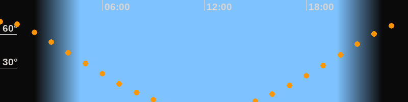 Höchster Stand (Kulmination)00:03 Uhr (h = 71°)
