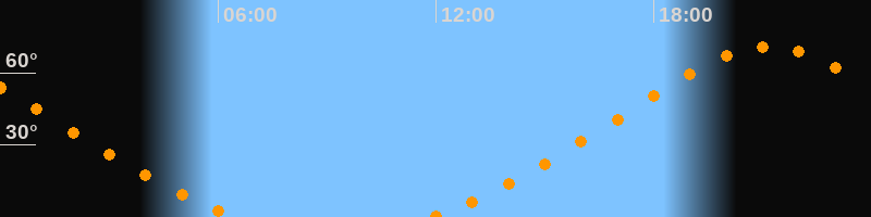Höchster Stand (Kulmination)21:10 Uhr (h = 71°)