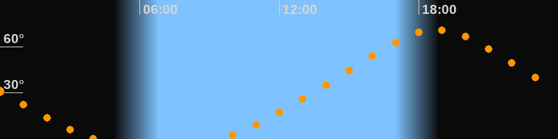 Höchster Stand (Kulmination)18:45 Uhr (h = 71°)