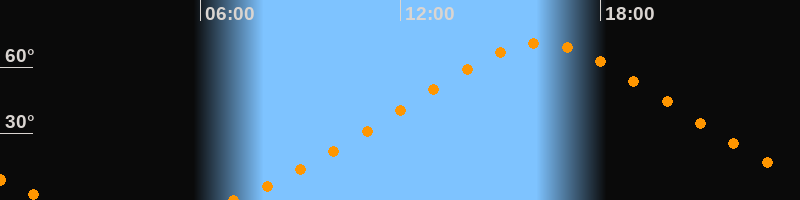 Höchster Stand (Kulmination)16:12 Uhr (h = 71°)