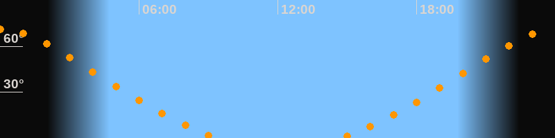 Höchster Stand (Kulmination)00:01 Uhr (h = 71°)