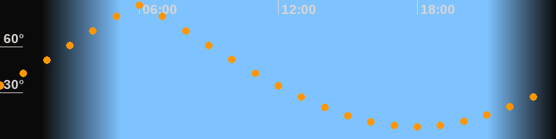 | Höchster Stand (Kulmination) | 06:00 Uhr (h = 86,7°) |