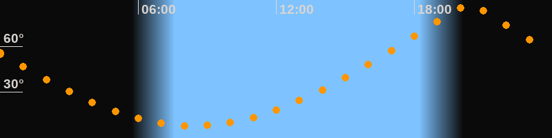 | Höchster Stand (Kulmination) | 20:23 Uhr (h = 86,7°) |