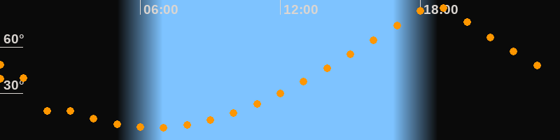 | Höchster Stand (Kulmination) | 18:35 Uhr (h = 86,7°) |