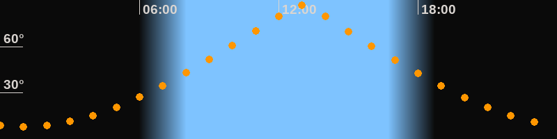 | Höchster Stand (Kulmination) | 12:58 Uhr (h = 86,7°) |