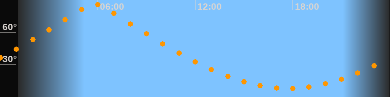 | Höchster Stand (Kulmination) | 05:47 Uhr (h = 86,7°) |