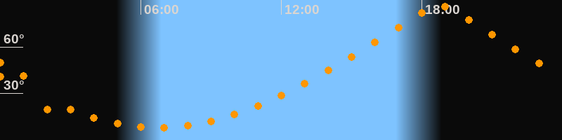| Höchster Stand (Kulmination) | 18:45 Uhr (h = 86,7°) |