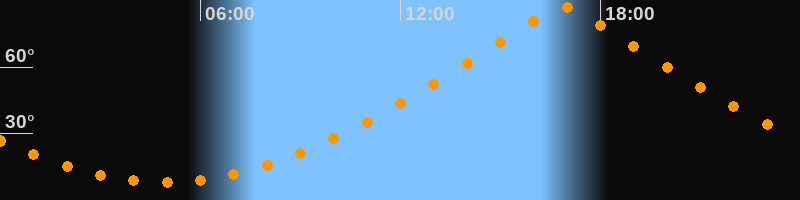 | Höchster Stand (Kulmination) | 16:55 Uhr (h = 86,7°) |