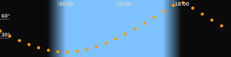 | Höchster Stand (Kulmination) | 18:46 Uhr (h = 86,7°) |