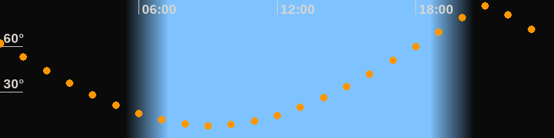 | Höchster Stand (Kulmination) | 21:06 Uhr (h = 86,7°) |