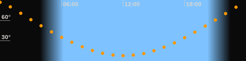 | Höchster Stand (Kulmination) | 00:00 Uhr (h = 86,7°) |