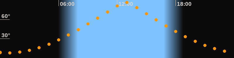 | Höchster Stand (Kulmination) | 12:50 Uhr (h = 86,7°) |